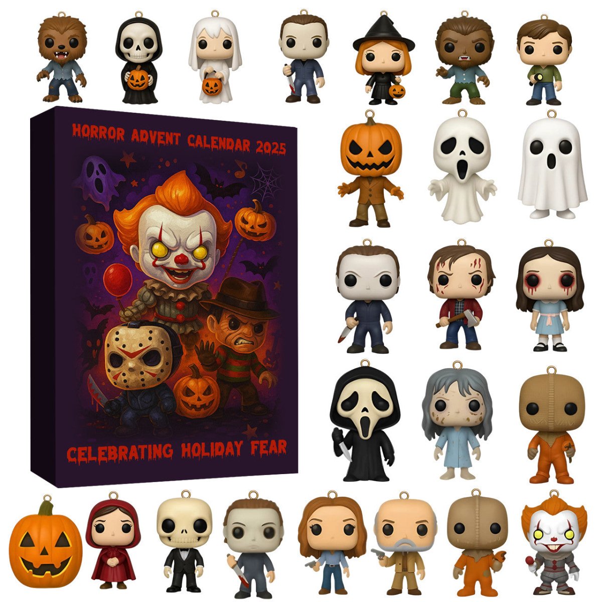 šÆļø Crafted in haunting detail, this deluxe collectorās calendar unveils 24 sinister surprisesāeach window hiding an iconic figure from the chilling legacy of horror cinema.